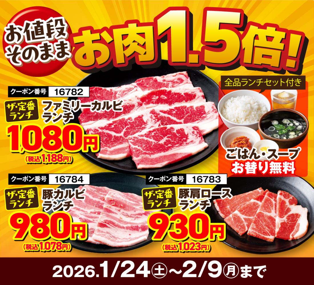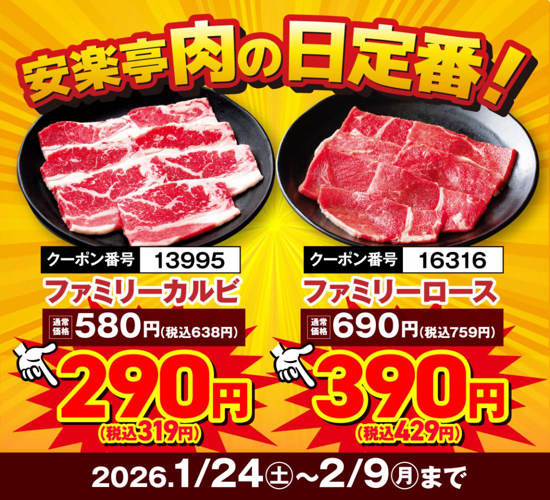 1月24日~スタート!【1月29日&2月9日は“W肉の日”】17日間の”肉の日リレーフェア”開催!【焼肉レストラン 安楽亭 百草園店】
