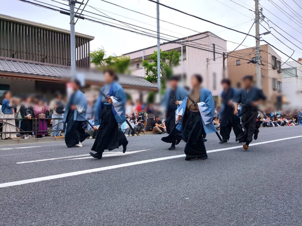 甲州街道いっぱいに広がる隊列が見どころの隊士パレードは、副長・局長を先頭に、各隊が隊列を組んで進む姿が迫力満点で、沿道には多くの観客が集まります。